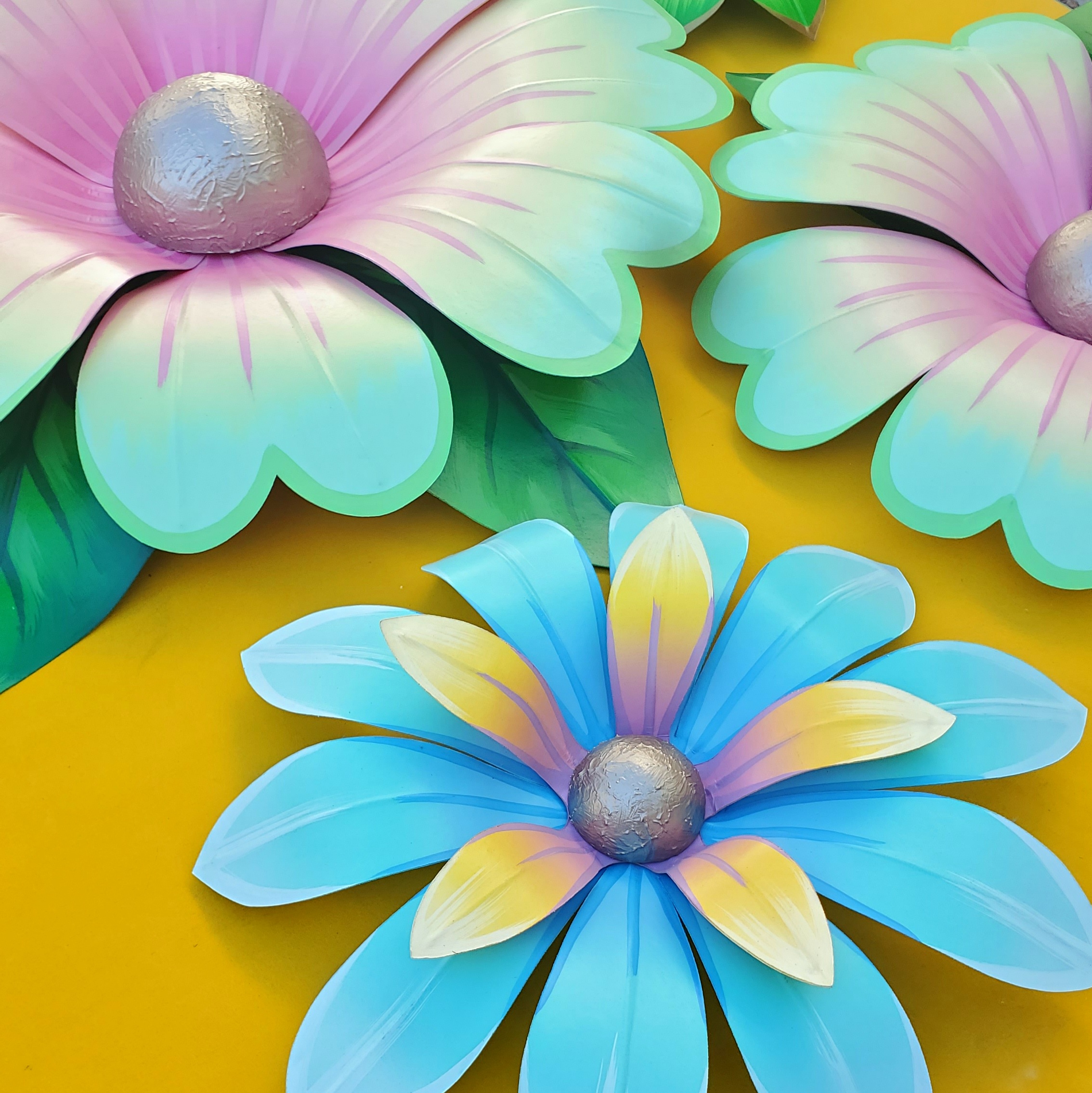 Approx. 29″ x 36″ x 4″ each. Due to this flower’s larger size shipping can be a challenge. Please reach out to info@mardigrascustoms.com for a shipping quote.