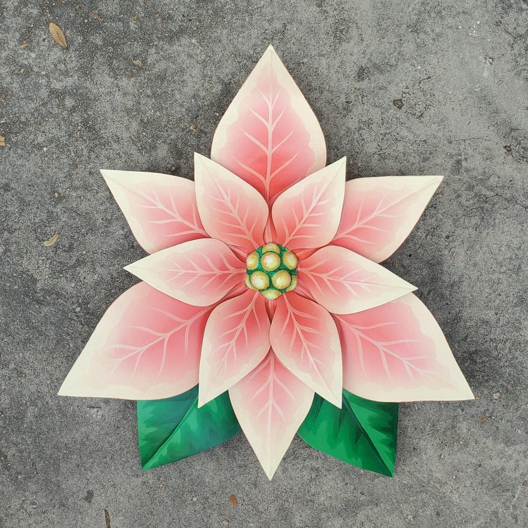 All flowers and leaves are made of paper and wire, the same way they are traditionally crafted for New Orleans’ Mardi Gras parades. They are not waterproof and should be kept safe from rain and direct sun. Each flower comes with hanging hardware attached on the back. For hanging tips, please visit our flower hanging and care page!
